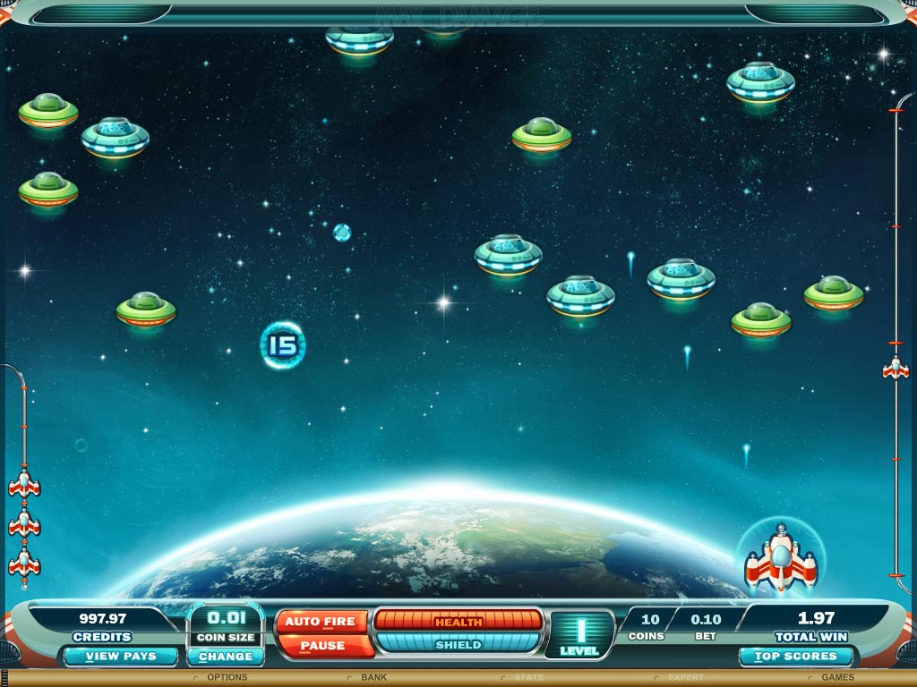 Alle Fans der klassischen Casino-Unterhaltung sollten jetzt unbedingt weiterlesen! Max Damage and the Alien Attack ist ein aufregendes neues Video Slot-Spiel, das von Microgaming im klassischen Videospiel-Stil kreiert wurde und Sie direkt in eine Spielhalle versetzt! Die Funktionen und Abläufe des Spiels werden Sie in Ihre Kindheit und Jugend zurückversetzen, während Sie gleichzeitig von den hochqualitativen Grafiken und Soundeffekten profitieren, für die Microgaming berühmt ist.